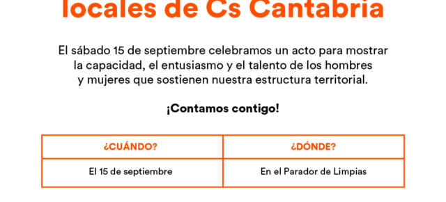 Santander, jueves 13 de septiembre de 2018. Ciudadanos (Cs) Cantabria celebrará el próximo sábado, día 15 de septiembre, el I Encuentro Autonómico de la formación, en un acto que tendrá lugar en el Parador de Limpias a partir de las 15.30 horas y en el que serán presentados los coordinadores y responsables de las agrupaciones y grupos locales. El I Encuentro Autonómico de Cs Cantabria se desarrollará coincidiendo con la festividad de la Bien Aparecida, patrona de la comunidad autónoma, un motivo por el que, tras la asistencia a los actos programados en el Santuario de la Bien Aparecida, en Hoz de Marrón (Ampuero), los responsables públicos, cargos orgánicos y afiliados de Cs se dirigirán al Parador de Limpias, donde tendrá lugar una comida de hermandad antes de proceder a la celebración del Encuentro. El acto contará con las intervenciones del portavoz autonómico y diputado nacional, Félix Álvarez, así como del secretario de Organización, José López. Al mismo asistirán los miembros del Comité Autonómico de Cs Cantabria y afiliados de las 13 agrupaciones y 11 grupos locales del partido naranja.