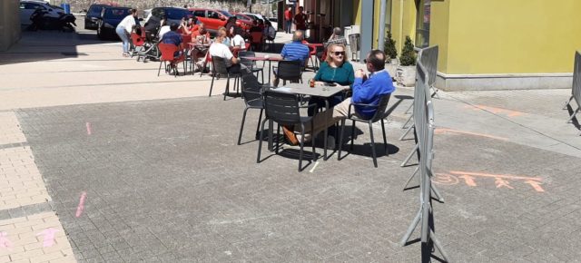 Hace semanas que el Ayuntamiento viene visitando de manera individual cada negocio hostelero del municipio para fijar los espacios de terraza Astillero, miércoles 20 de mayo de 2020. El Ayuntamiento de Astillero está logrando que la convivencia entre terrazas y peatones sea positiva en las calles del municipio. Hace semanas que trabajadores municipales, entre los que se encuentra un médico, vienen visitando de manera individual cada negocio hostelero del municipio para fijar los espacios de terraza. En primer lugar, se ha marcado la zona de tránsito peatonal, indicando los sentidos de circulación de los peatones y el espacio restante se ha puesto a disposición de los hosteleros para la instalación de terrazas. “Hemos hecho una labor muy personalizada, visitando cada establecimiento, y en función de la ubicación de cada uno y respetando las medidas de seguridad entre clientes y viandantes, se ha instalado el mayor número de mesas posibles”, ha explicado el alcalde del Ayuntamiento de Astillero, Javier Fernández Soberón, que ha estado presente durante las visitas. “Ir bar a bar supone un grandísimo esfuerzo, pero es la mejor forma de conocer las necesidades reales de cada uno de ellos y de enriquecer las ideas que … Sigue leyendo Las terrazas y los peatones conviven en las calles de Astillero y Guarnizo